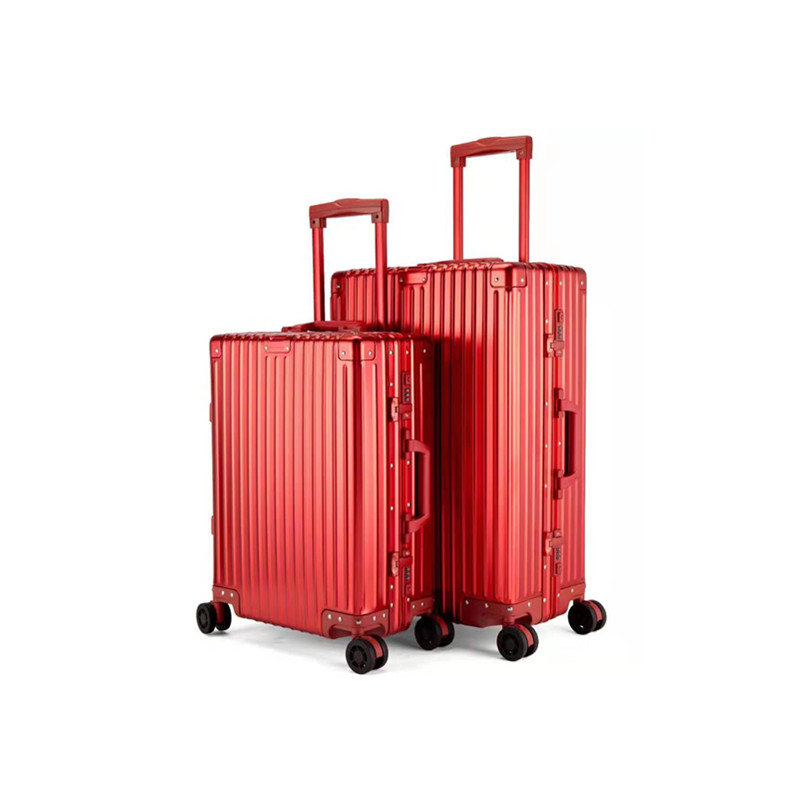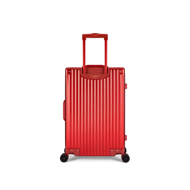 產品材質:鋁鎂合金 產品顏色:紅色 產品箱體尺寸:360*205*500mm 產品外觀尺寸:475*290*635mm 產品信息:簡約條紋設計,采用一體化防爆框架氧化技術加硬處理,安全牢固 ,高科技無極變速拉桿,可隨心調整長度,適應不同身高,高度可調分隔板可拆卸內襯,人性化空間區分 靜音萬向滑輪,加厚橡膠外輪耐磨耐用 雙重TSA加持,安全感倍增